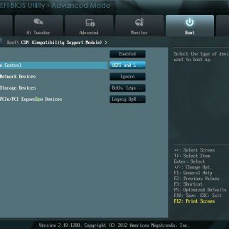 Once inside the UEFI setup and configuration section, you’ll be presented with a number of options and parameters that can be configured for the firmware environment. The option you’re looking for has many names, (depending on the make and model of the PC or laptop and the EFI firmware). Some of the possible setting names you’re looking for are listed below, along with their possible configurations, the bold values are what should be selected.